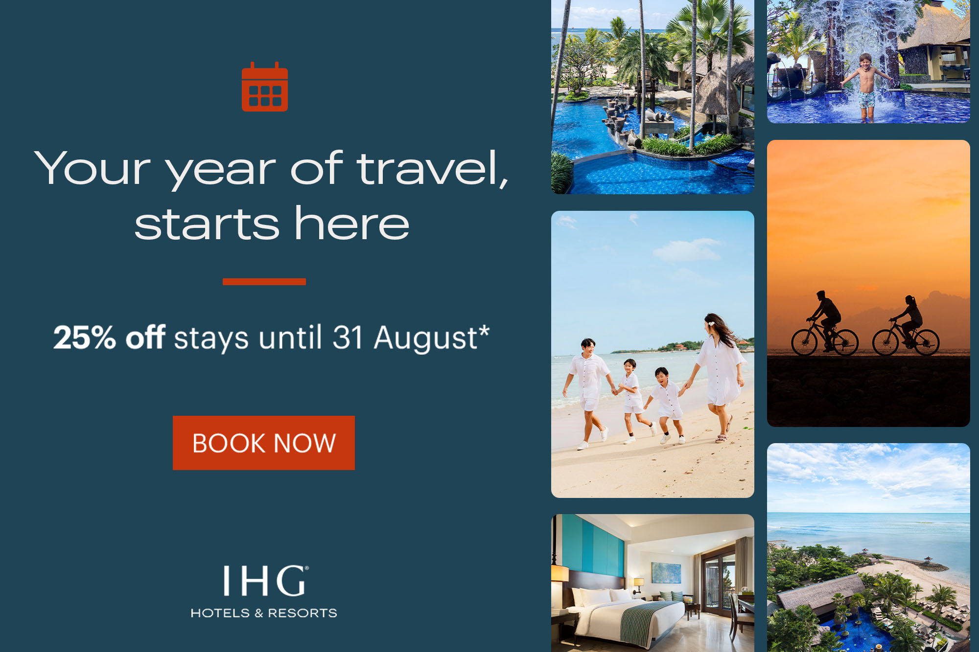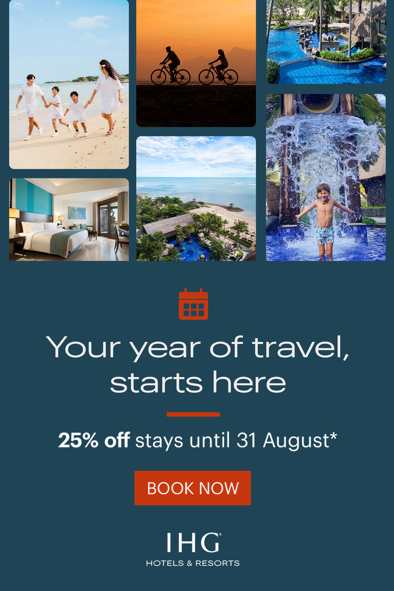 Set along the pristine Nusa Dua Beach, Holiday Inn Resort Bali Nusa Dua offers a modern coastal escape just 20 minutes from Bali Ngurah Rai International Airport and top attractions. Enjoy spacious suites with ocean views, themed kids’ decor, and four pools, including two infinity pools and a kids' pool with a slide. Dine on Indonesian and international cuisine, relax at the swim-up bar, or rejuvenate at Tea Tree Spa. With free Wi-Fi, a game zone, and a beachfront lounge, this resort promises a memorable Bali getaway for all.